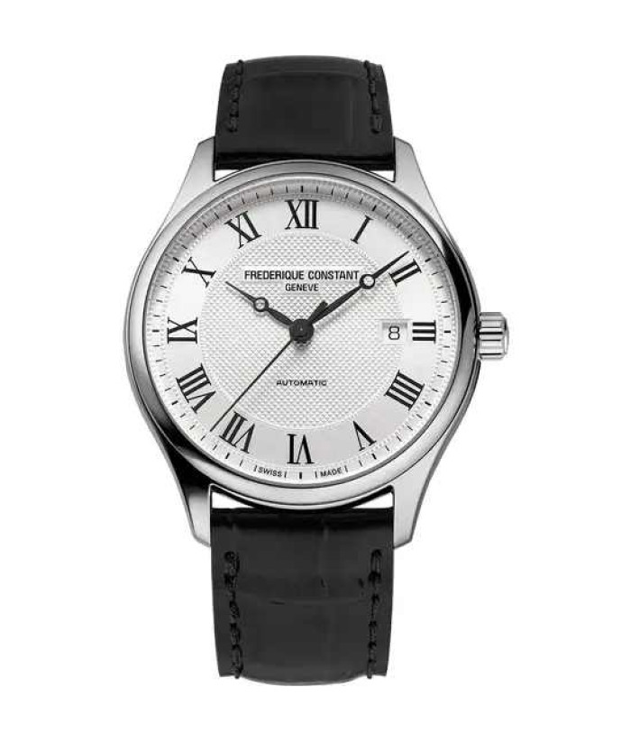 La montre Frederique Constant Classics Index Automatic revisite un design traditionnel avec modernité grâce à son calibre FC-303 de manufacture. Son boîtier en acier inoxydable poli abrite un cadran argenté orné de chiffres romains noirs et d'un guichet de date. Ce garde-temps automatique est complété par un bracelet en cuir noir souple qui s'accordera parfaitement à toutes vos tenues.